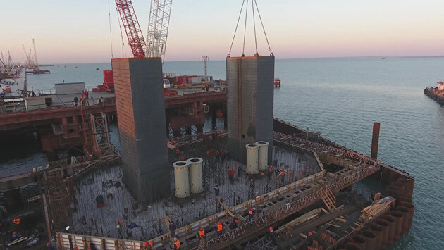 На стройке моста в Крым приступили к сооружению тел фарватерных опор