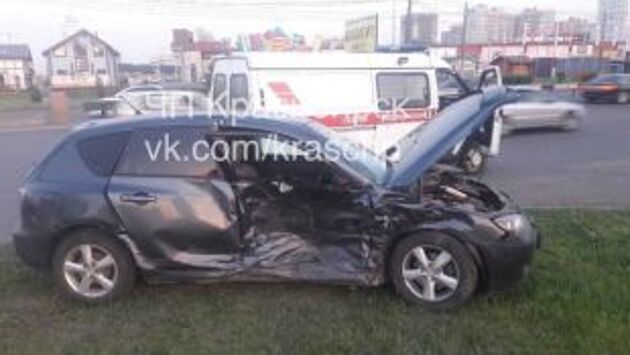 Четыре человека пострадали в аварии в мкрн Северный Красноярска. Фото очевидцы разместили в социальной сети, а видео происшествия зафиксировано на камеру уличного наблюдения. ДТП произошло в субботу, 17 июня, на пересечении улиц 9 мая и 78 Добровольческой бригады в краевом центре. Автомобиль Mazda, за рулем которой находилась 44-летняя женщина, выехал на перекресток, где произошло столкновение с автомобилем Toyota. От удара «Мазду» отбросило на газон. Вызволять женщину из покорёженной машины пришлось спасателям. Травмы получила и 17-летняя пассажирка этой машины. В «Тойоте», кроме 520лтнего водителя, находились 53-летняя женщина-пассажирка и 10-летний ребенок. Их доставили в больницу. Дорожные полицейские выясняют все обстоятельства аварии.