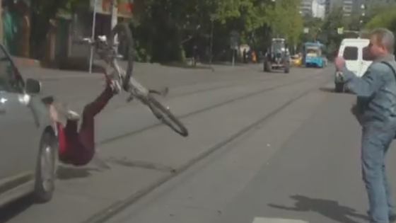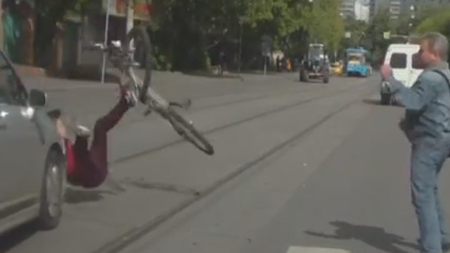 В Сети опубликована запись с видеорегистратора, на которой запечатлена авария с участием юного велосипедиста, произошедшая 23 июня на улице Краснобогатырской. На кадрах видно, как юноша на велосипеде попытался пересечь проезжую часть по пешеходному переходу, но попал под колеса автомобиля. Несмотря на то, что парня подбросило в воздух, он встал после падения и отошел в сторону с велосипедом. А сбивший его Nissan как ни в чем не бывало продолжил свой путь. Только лишь вняв увещеваниям автора ролика, он все-таки остановился у тротуара.