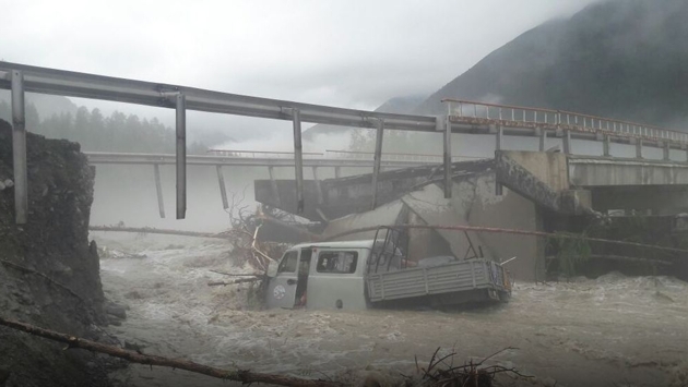 УАЗ-фермер провалился в реку на разрушенном мосту на трассе «Колыма»