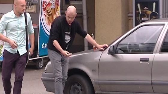 Сотрудники ГИБДД провели социальный эксперимент — актер согласился исполнить роль нетрезвого водителя и попытался сесть за руль. Как отреагировали горожане — попытались помешать или же остались равнодушными? Знакомьтесь. Это Роман Горшков. Проектировщик вебсайтов. Актер театральной студии. Он согласился исполнить роль пьяного водителя. Роман Горшков, актер: — К пьяным отношусь отрицательно. Хочу проверить, насколько сознателен у нас народ в городе Задача Романа – изобразить пьяного водителя и проверить, помогут ли ему калининградцы сесть за руль. Для правдоподобности одежду актера облили спиртосодержащей жидкостью, а на капот поставили бутылку из-под крепкого напитка. — Извините, не поможете открыть … На глазах многочисленных прохожих Роман пытается открыть автомобиль. Кто-то проходит мимо, кто-то пытается остановить. — Ребята, не поможете открыть машину. Доехать недалеко. — Машину не поможете открыть… И только один прохожий помогает открыть автомобиль. Оглядываясь назад, он достает телефон и кому-то пытается позвонить. Возможно, это звонок в полицию. Сменив место съемок, продолжаем эксперимент. — Как доедешь? Ты что! С ума сошел! Давай я довезу! Нельзя, дружище! Этот молодой человек проявил особую бдительность. Не только не дал сесть за руль нашему герою, но и забрал ключи от машины и предложил довезти до дома. Олег Федирко, житель Калининграда: — Ключи забрал. Продолжить наш эксперимент мы не смогли по одной причине: к машине с условно пьяным водителем подошел строгий инспектор ДПС. Александр Иванов, инспектор ДПС ОБ ДПС ГИБДД УМВД РОССИИ по Калининградской области: — Получил информацию и незамедлительно прибыл. По всей видимости, именно тот прохожий, который и помог открыть Роману автомобиль, впоследствии сообщил в ГИБДД о пьяном водителе. Стоит отметить, что подобный эксперимент проводился во многих городах России, жители которых частенько сами открывали машину актерам. Такой сознательности как в Калининграде, пожалуй, не проявили нигде. За полчаса съемок «нетрезвому» водителю никто не помог сесть за руль. Наталья Беренева