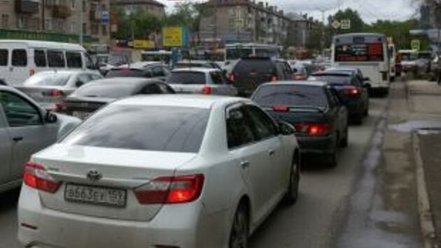 Вечерняя пробка сковала улицу в Октябрьском районе Новосибирска