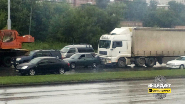 ДП произошло на улице Ипподромской недалеко от торгово-развлекательного центра «Аура». Участние в нем приняли Toyota 4Runner, ВАЗ-2110 и фура с алтайскими номерами MAN, сообщает «Инцидент Новосибирск». Пострадавших нет. Водитель фуры вину не признал, утверждая, что виновником является водитель внедорожника, который якобы отвлекся на телефон и вовремя не поехал. По словам двух других участников ДТП, они оба стояли на красный сигнал светофора. Пользователей соцсетей привело в восторг объяснение алтайца. «Вовремя не поехал? Железобетонный аргумент, в духе алтайцев. И все вокруг неправы, кроме них», — написал подписчик паблика Александр Русаков. «У нас появилось в ПДД новое предписание — вовремя поехать?», — поддержал его Дмитрий Ярков. Большегрузные автомобили нередко создают в мегаполисе проблемы для других участников дорожного движения. В середине июня огромная фура Scania при развороте зацепила две машины и напрочь перекрыла Красный проспект в районе станции метро «Гагаринская».