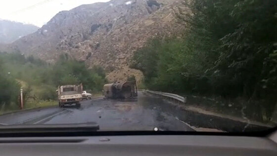 В ущелье Чычкан перевернулась цистерна, разлилось 36 тонн мазута