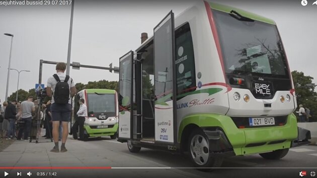 Видеофакт: беспилотные автобусы "паровозиком" ездят по Таллинну