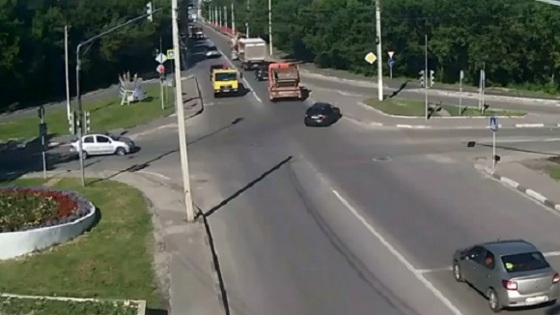 ДТП произошло на одном из перекрестков города в понедельник, 31 июля. Телеканал «360» публикует видеозапись с уличных камер наблюдения. На кадрах видно, черная легковушка, задев бордюр, выворачивает на встречную полосу, где врезается в грузовик. По предварительной информации, в аварии никто не пострадал.