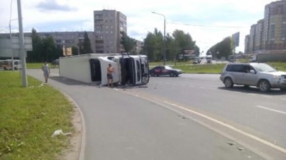 ДТП произошло около часа дня на пересечении Окружного шоссе с улицей Преображенского. Как пояснил корреспонденту Вологда-Поиска старший инспектор отделения пропаганды безопасности дорожного движения УГИБДД УМВД РФ по Вологодской области Роман Ушаков, водитель рефрижератора Вольво не справился с управлением. В результате произошло опрокидывание грузовика. В аварии никто не пострадал. По некоторым данным, машина везла мороженое. Олег Куликов Фото Руслана Мазалева