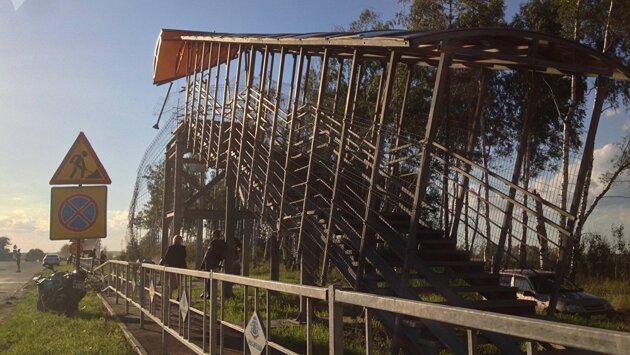 МИНСК, 6 авг — Sputnik. Медики оценивают как стабильное состояние водителей, пострадавших при обрушении пешеходного надземного моста на трассу М-7 "Волга" во Владимирской области. Как ранее сообщал Sputnik, надземный пешеходный переход обрушился в воскресенье на 305-м километре трассы М-7 в Вязниковском районе Владимирской области. Виновником инцидента стал водитель манипулятора на базе автомобиля Daewoo-Novus, который передвигался с поднятой стрелой и столкнулся с конструкцией надземного металлического пешеходного моста. В упавшую конструкцию врезались грузовик и мотоцикл. Оба водителя, жители Московской области, госпитализированы. "Состояние пострадавших стабильное, угрозы их жизни нет. У одного из них черепно-мозговая травма и раны лица, у второго — перелом ноги, в настоящий момент его оперируют", — сообщили журналистам в пресс-службе регионального управления МВД России. Давка на футболе и обрушение стены в Сенегале — 8 погибших>> Движение на трассе было перекрыто в обе стороны, после чего образовались серьезные пробки. Так, по направлению в сторону Нижнего Новгорода, согласно отметкам на дорожных знаках, пробка растянулась на пять километров. Сейчас движение на участке трассы полностью восстановлено. Стали известны подробности обрушения ограждения на стадионе в Витебске>> По факту обрушения поста на водителя манипулятора составлено два административных протокола по статье 12.33 "Повреждение дорог, железнодорожных переездов или других дорожных сооружений либо технических средств организации дорожного движения" и 12.24 КоАП "Нарушение правил дорожного движения или правил эксплуатации транспортного средства, повлекшее причинение легкого и средней тяжести вреда здоровью потерпевшего". МАЗ с поднятым кузовом врезался в путепровод на М-1>>