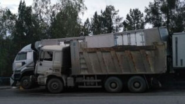 Два многотонных грузовика столкнулись на дивногорской трассе накануне. Фотографии очевидцы разместили в социальной сети. Вечером 8 августа на трассе Красноярск-Дивногорск грузовик MAN въехал в грузовик-фургон. Как сообщают свидетели ДТП, MAN ехал справа и не смог затормозить на повороте, в результате на скорости врезался в большегруз и пости вдавил его в бетонное заграждение. Предположительно, у самосвала от перегрева отказали тормоза. Аварийным съездом водитель воспользоваться не смог. В ГИБДД сообщили, что пострадавших в аварии нет. У самосвала сильно помята кабина, а у фуры выгнуло заднюю колесную ось.
