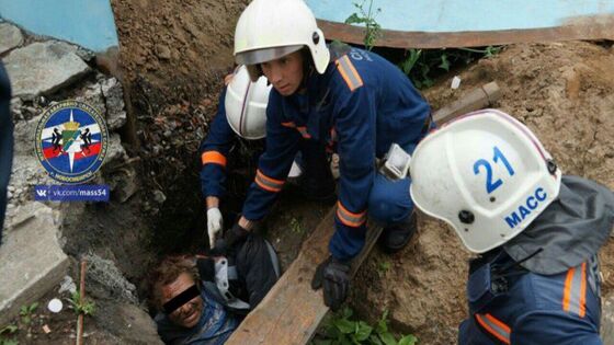 Пьяного новосибирца подняли спасатели из строительной ямы