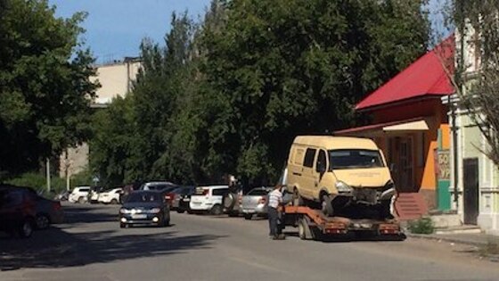 В центре Омска инкассаторская машина протаранила киоск быстрого питания