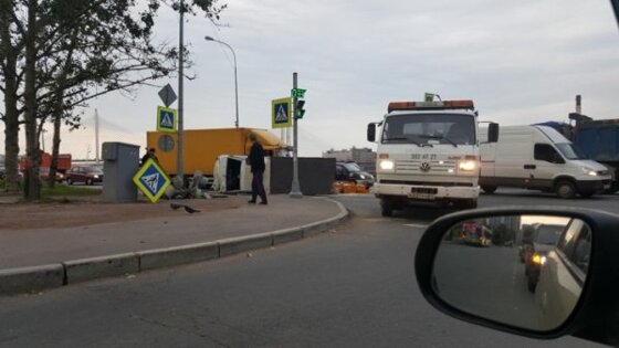 Фура с хлебом опрокинулась в Петербурге