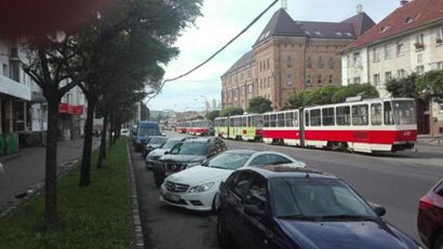 На ул. Черняховского из-за ДТП сбилось движение трамваев