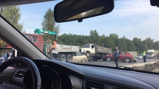 Массовое ДТП в Богородском районе: легковушку зажало между двумя грузовиками (ФОТО, ВИДЕО)