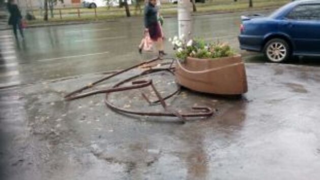 В Барнауле автомобиль уничтожил малую архитектурную форму «Ладья»