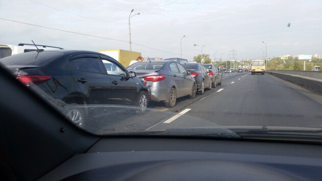 На Мызинском мосту Нижнего Новгорода самосвал смял 7 автомобилей. Видеозапись в соцсети "ВКонтакте" разместил паблик КstatiNN.