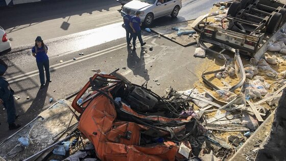 Крупное ДТП в Ереване: перевернулся грузовик, водитель скончался