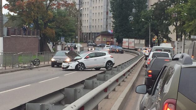 На Ленинградском шоссе в Выборге иномарка с оторваным колесом перегородила движение