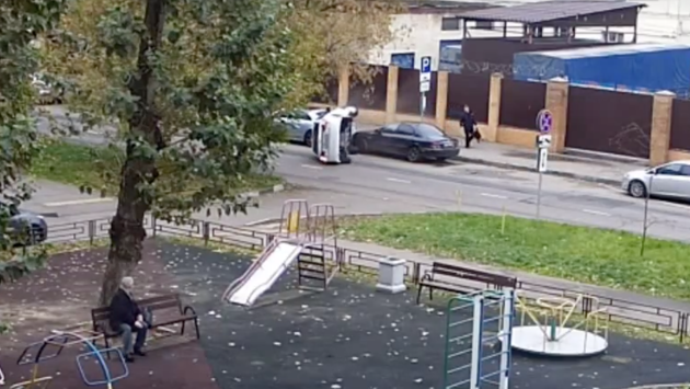 Автомобиль перевернулся в центр Москвы после столкновения