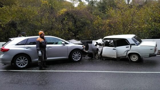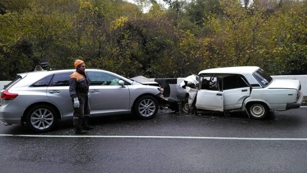 На трассе Джубка-Сочи произошла лобовая авария: в машине зажало людей