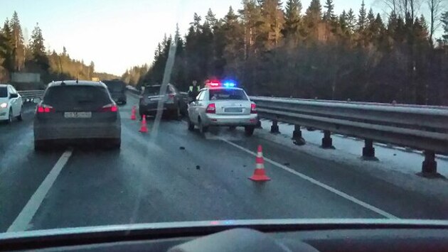 Автолюбители сообщают, что днём 2 ноября на трассе "Скандинавия" произошла авария между двумя автомобилями. Как сообщает пользователь портала "Мегаполис", ДТП между двумя автомобилями случилось около 16:40 в районе моста через реку Перовка на трассе "Скандинавия". По предварительной информации, в результате столкновения микроавтобуса и легковушки пострадал водитель легкового авто. Кроме того, пользователи предостерегают, что на "Скандинавии" очень скользко и просят беречь себя, не превышая скорость и не совершая опасные обгоны.