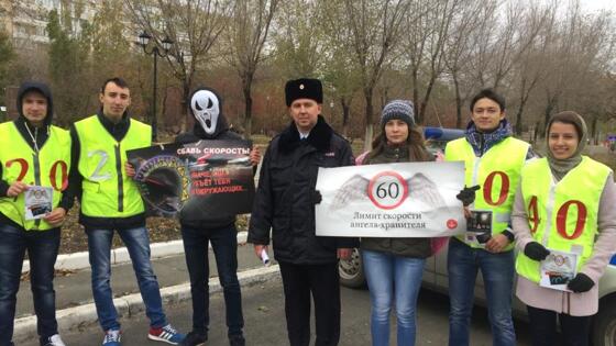 В Оренбурге сотрудники ГИБДД вместе с представителями молодежной организации «Сектор безопасности» вышли на дороги города, чтобы привлечь внимание водителей к безопасности. Акция получила название «Сбавь скорость! Сохрани жизнь!». Полицейские останавливали на оживленной улице Оренбурга автомобили, а молодые помощники в образах Ангела и Смерти призывали водителей выбирать быть осторожными на дорогах, соблюдая скоростной режим. В руках представители организации держали плакаты с надписями «Сбавь скорость, иначе она убьет тебя и окружающих!» и «60 – лимит скорости ангела-хранителя». В очередной раз областная Госавтоинспекция напоминает оренбуржцам: выбирайте скорость движения с учетом погодных условий, соблюдая дистанцию и боковой интервал.