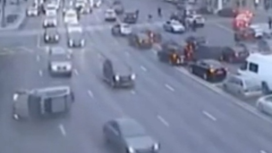 На видео запечатлено, как на пересечении Садового кольца и Дубининской улицы машина, двигаясь в крайнем правом ряду, внезапно подпрыгивает на месте и опрокидывается набок. На кадрах видно, что автомобиль при этом не контактирует с другими транспортными средствами. Издание отмечает, что на ближайшем перекрёстке ранее произошла другая авария. КамАЗ зацепил стрелой провода, которые упали на проезжую часть и накрыли несколько автомобилей. Оказалось, что именно в этих проводах запуталась «мистическая» машина.