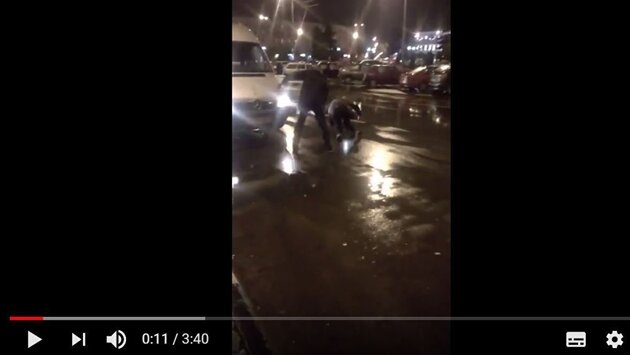 Все произошло в субботу, 11 ноября, примерно в 19 часов вечера. Сильно пьяные горожане пытались сесть в маршрутку №5, но водитель не пустил их в салон. После этого мужчина получил кулаком в лицо, завязалась драка. Прохожие сняли происходящее на видео. Можно видеть, что двое мужчин качают права и не дают уехать маршрутке с остановки, фотографируют номер машины. Водитель буквально вышвыривает одного из них, но мужчины все равно возвращаются и, опершись на капот, препятствуют проезду. Прохожие рассуждали между собой: "Нужно было сразу вызвать милицию и не вступать в бой с неадекватными людьми". Свидетели уверяли, что пьяные дебоширы не могли долго открыть дверь, а водитель сразу же им сказал: "Я вас таких пьяных не повезу". Все переживали, чтобы у водителя не сдали нервы. История закончилась тем, что прохожие вызвали милиционеров.