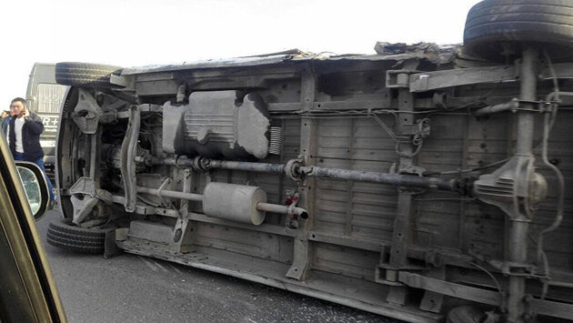 На объездной трассе произошло ДТП, маршрутка упала на бок — фото очевидца