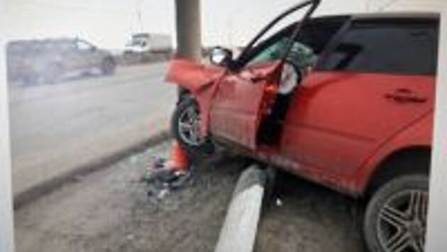 В Самаре легковую машину разорвало после удара о рекламный столб
