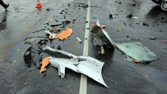 Шесть машин столкнулись в Бишкеке - одна упала на бок
