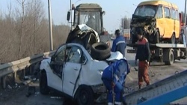 Погиб уфимец, сообщают медики, ещё восемь человек доставлены в больницу. ДТП произошло на улице Перспективной в Калининском районе. Водитель легкового автомобиля Nissan Almera следовал в сторону микрорайона Шакша, выехал на встречку, где столкнулся с микроавтобусом. Водитель легковушки погиб на месте. ГАЗель следовала по маршруту №221, всего в ней находились 13 человек. 13 жизней пронеслись перед глазами. Ровно столько пассажиров везла ГАЗель, что попала в ДТП. Легковушка выехала на встречку и влетела в микроавтобус, наполненный людьми. Поездка к дочери в город едва не стоила жизни Елене Макаровой. Множественные сильные ушибы, конечности опухли, одним глазом женщина не видит, поэтому попросила закрыть её лицо. В злополучное утро пострадавшая не должна была сесть в тот автобус. Елена Макарова, пострадавшая: «Я обычно часов в 10 еду, а тут поехала пораньше. Была мысль задержаться. Я обычно к себе прислушиваюсь, и если не хочется ехать, я не еду». Проездной билет разменяли на рентген-снимки ещё три женщины. С гематомами, переломами рук и ног они остались сегодня в больнице. Ольга Фролова, пострадавшая: «В ноге две дырки, голова разбита. Воткнулась в сиденье ногой, там штырь или что-то ещё. В таком состоянии ничего не помнишь. Все просто упали на пол и потом стали выходить». Камиль Нигматуллин, заведующий отделением анестезиологии и реанимации Городской клинической больницы №13: «В экстренном порядке после ДТП в нашу больницу доставлено 8 пострадавших. Всем проведены необходимые медицинские мероприятия: обработка ран, обезболивание и репозиция переломов, наложены гипсовые повязки». Никто из пострадавших не был пристёгнут. Не мудрено: в автобусе не было ремней безопасности, рассказывают пассажирки. Кто виноват в аварии и на чьей совести травмы людей, выяснит следствие. Водителю микроавтобуса тяжело общаться сейчас с журналистами. Легковушка восстановлению не подлежит. Мужчина, который находился за рулём «Ниссана», скончался тут же, на месте ДТП. Тело из машины уже вытаскивали. Номера на автомобиле московские, но за рулём был местный, 25-летний житель Иглинского района. В багажнике – игрушки. На место происшествия приезжали специалисты, замеряли размер колеи. Год назад по этой же причине здесь легковушка лоб в лоб влетела в КамАЗ. Погиб водитель легкового автомобиля. Очевидцы утверждают: легковая машина странно виляла, кто-то и вовсе говорит, что водитель был нетрезв. Известно, что обе машины были на летней резине. В деле предстоит разобраться правоохранительным органам. Вот только жизнь молодого водителя уже не вернуть.