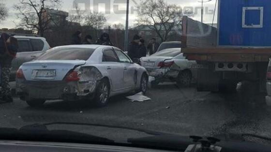 В понедельник, 27 нояября, во владивостоке на улице Постышева произошло ДТП, которое стало причиной пробки со стороны Зари в насправлении улицы Молодежной, сообщает PRIMPRESS. Так, мужчина за рулем автомобиля Toyota Mark II двигаясь по проспекту 100-летия Владивостока решил перестроится, но не рассчитал свои возможности, в результате чего совершил столкновение с впереди идущей машиной, которая, в свою очередь, врезалась в грузовик. У последнего от удара пробило бензобак. На место происшествия прибыли пожарные для смыва ГСМ с проезжей части. Из-за аварии на данномучастке дороги собралась пробка. На месте происшествия работают сотруники ГИБДД.