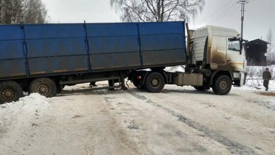 Опрокинувшийся грузовик блокировал движение на дороге под Вологдой
