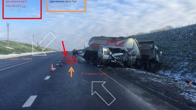 Около полудня 3 декабря на 20-километре трассы Калуга Тула в Перемышльском районе цементовоз MAN выехал на встречную полосу и врезался в пассажирскую «Газель». Обе машины после столкновения оказались в кювете. Фото УГИБДД по Калужской области Как сообщили в УГИБДД по Калужской области, в результате этой аварии травмы пострадали трое – 41-летний водитель и двое пассажиров микроавтобуса. Одному из них 44 года, второму – 50 лет. Водитель получил перелом стопы, ушибленные раны головы и позвоночника, его пассажиры были госпитализированы с черепно-мозговыми травмами и переломами конечностей. .