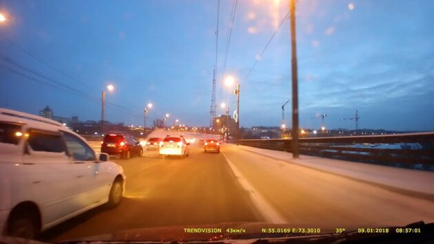 Три человека попали в больницу в результате массовой аварии, произошедшей в первый рабочий день в Омске, сообщила пресс-служба регионального управления ГИБДД. Камера регистратора запечатлела момент ДТП. Местом действия стал печально известный в городе мост имени 60-летия ВЛКСМ, где с завидным постоянством происходят аварии, в том числе и серьезные. Около 9 часов утра (примерно 06:00 по Москве) во вторник, 9 января, 35-летний владелец ВАЗ-2112 не совладал с управлением, так что его транспортное средство развернуло и выбросило на встречную полосу. Двигавшая задом "двенадцатая" на полном ходу протаранила Toyota Fielder, после чего в них врезалась Mazda 3. Помощь медиков потребовалась виновнику аварии, 34-летнему пассажиру, а также 43-летней владелице Toyota, чья машина получила наибольший урон. Всех пострадавших доставили в больницу. Спустя несколько минут в считанных метрах от места первой аварии столкнулись еще три машины, однако на сей раз обошлось без пострадавших. В региональном управлении ГИБДД отметили, что последние ДТП произошли по вине спешивших водителей, но при этом пообещали рассмотреть варианты введения