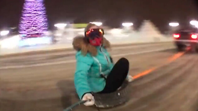 Опасное развлечение парень и девушка сняли на видео и выложили в Сеть. 19-летние парень и девушка 9 января проехали по центру Екатеринбурга на покрышке, привязанной к автомобилю. Опасное развлечение они сняли на видео и выложили в соцсети. Экстремалы решили не обременять себя лишней защитой, они облачились в сноубордические костюмы и закрыли лицо маской и очками, чтобы в глаза и рот не летела грязь с дороги. Как рассказали сами участники видео, сначала они опробовали подобное катание на пустых парковках, после чего решились проехаться и по улицам города, сообщает портал E1.ru. В ГИБДД такие развлечения не одобрили и заявили, что действия молодых екатеринбуржцев попадают под ч.2 ст. 12.23 КоАП РФ «Перевозка людей вне кабины автомобиля», нарушение которой грозит штрафом в одну тысячу рублей.