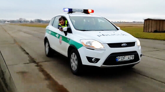 В Школе литовской полиции проходят тренировки на аэродроме имени Стяпонаса Дарюса и Стасиса Гиренаса. Будущие полицейские практикуются в использовании огнестрельного оружия для остановки автомобиля, а также учатся уворачиваться от шипованной ленты для прокола шин. В ролике видно, как полицейский автомобиль имитирует погоню за нарушителем. Сотрудник полиции кидает перед машинами шипованную ленту и ученики полицейской школы успевают увернуться от "ежа" и затормозить. Тренировки на аэродроме будут проходить всю неделю.