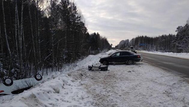Утром 10 января в Кировской области столкнулись «Киа Рио» и «Киа Спектра». Один из автомобилей вылетел в кювет. Об этом сообщили в УГИБДД УМВД России по Кировской области. Авария произошла в 10:40 на 30 км автодороги Киров – Советск –Яранск. По предварительным данным, 27-летний водитель автомобиля «Киа Рио» не справился с управлением. Машина выехала на встречную полосу, где врезалась в припаркованную у края проезжей части «Киа Спектру». После удара «Киа Рио» съехала в кювет и перевернулась. В результате 30-летняя пассажирка этой иномарки получила травмы. Ее доставили в больницу. На данный момент все обстоятельства ДТП устанавливаются. Фото – УГИБДД УМВД России по Кировской области