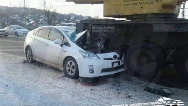 В Приморье автокран «раздавил» легковушку