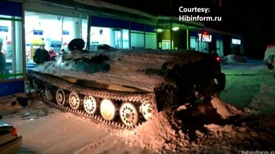 На танке за вином или самое «курьезное» ДТП нового годаНа днях в России произошло, пожалуй, одно из самых необычных и курьезных ДТП нового года. Житель Апатитов угнал из местной автомобильной школы ДОСААФ бронированный гусеничный тягач МТЛБ, после чего отправился на нем в магазин. Преодолев лесополосу тяжелая техника зашла в город, где по пути переехала автомобиль Daewoo и в итоге уткнулась передней частью в витрину закрытого супермаркета. Судя по всему, угонщик следовал четко поставленной цели – опохмелиться после затянувшихся новогодних праздников, поскольку направился в вино-водочный отдел и похитил бутылку вина. Правда выпить ее мужчине не удалось – уже на выходе его поджидал наряд полиции, который и доставил того в участок.