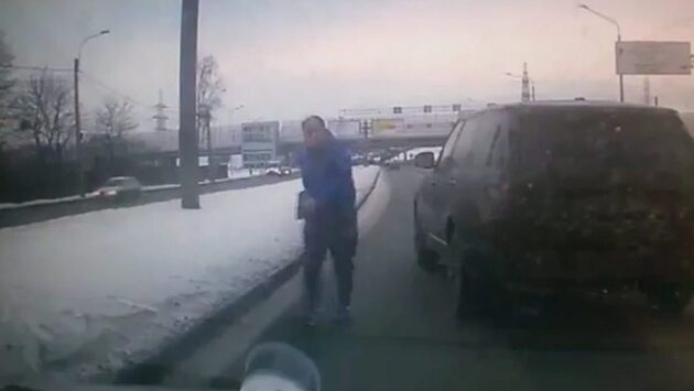 "Учитель" на Range Rover ногой снес зеркало мешавшей ему легковушки