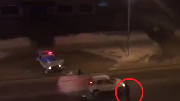 Скорее всего, двое полицейских забросали снежками авто, чтобы ослепить водителя, но это им не удалось - машина проехала мимо, не сбавляя скорости. Следом за преступником гнались две машины с включеной сиреной. Удалось ли в итоге поймать угонщика, пока неизвестно.