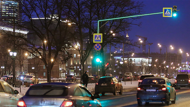 Светофоры с инновационной подсветкой переходов оборудовали еще на 25 столичных магистралях