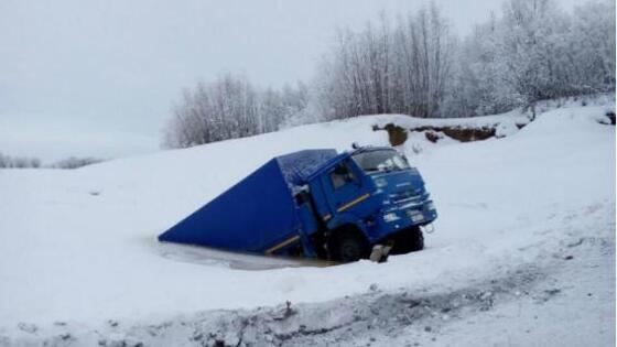 На Ямале провалившийся под лёд «КамАЗ» не могут вытянуть до сих пор