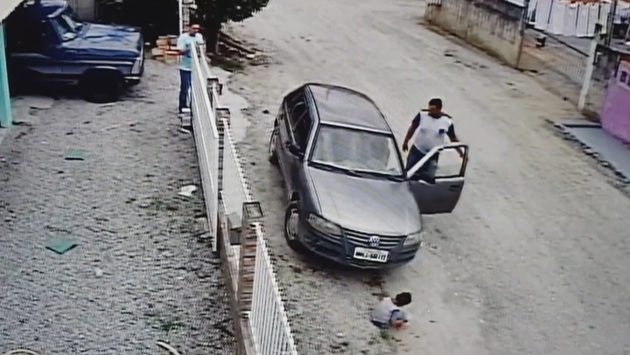 В сети размещены кадры инцидента с участием трехлетнего ребенка по имени Калеб и его дяди, произошедшего 5 февраля в городе Пальоса, расположенном в штате Санта-Катарина на юге Бразилии. На записи, сделанной камерой наблюдения, можно видеть, что мальчик играет на дороге перед припаркованной машиной, после чего водитель садится за руль и трогается с места. Через несколько мгновений легковушка проехала по тому месту, где находился ребенок, который в этот момент лег на землю. По словам матери малыша, в результате произошедшего ее сын не получил ни царапины, а дядя Калеба, управлявший авто, признался, что попросту не заметил племянника.