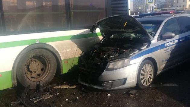 Камера наружного наблюдения зафиксировала момент столкновения машины ДПС и пассажирского автобуса в Ново-Переделкине, в результате которого полицейского госпитализировали с тяжелыми травмами. Авария произошла утром в среду, 21 февраля, на пересечении улиц Скульптора Мухиной и Федосьино в районе Боровского шоссе. Запись подтверждает сообщения очевидцев о том, что машина двигалась на высокой скорости и без включенных проблесковых маячков. На перекресток она вылетела на красный сигнал светофора — едва не задев поворачивавшую легковушку, служебная Skoda Octavia врезалась в бок следовавшего на стоянку автобуса, в салоне которого по счастью не было пассажиров. Находившийся за рулем инспектор ДПС получил серьезные травмы и был доставлен в больницу на вертолете.