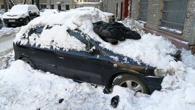 На севере Москвы работники ЖКХ разбили машину, скинув на неё глыбу льда