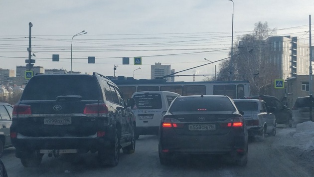 На Фурманова сломавшийся троллейбус перегородил дорогу