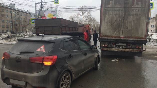 Утром, 7 марта, на улице Никитина в Новосибирске автомобиль «Киа Рио» задел фуру — автомобили заблокировали проезд. «Фура Volvo и Kia Rio двигались по улице Никитина, "Киа" в левом ряду, фура в правом ряду со стороны Воинской в сторону Кошурникова. "Киа" остановился перед затором, начал объезжать машину, которая с левого ряда поворачивала налево, не убедился в безопасности маневра и зацепил фуру», — рассказали специалисты мобильного приложения «Автоспас». Столкновение произошло в 10:20 на пересечении улиц Панфиловцев и Никитина. В ДТП никто не пострадал, вину участники не признают. Через час после аварии пробка длилась до Никитина от Пролетарской.